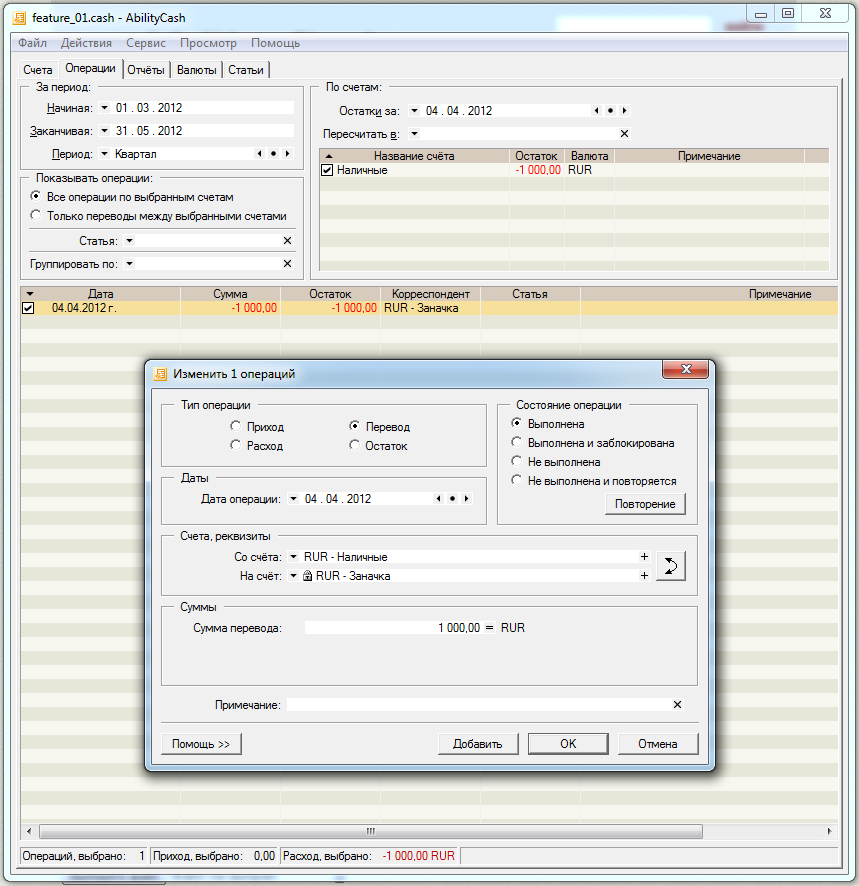 Список операций -> операции перевода